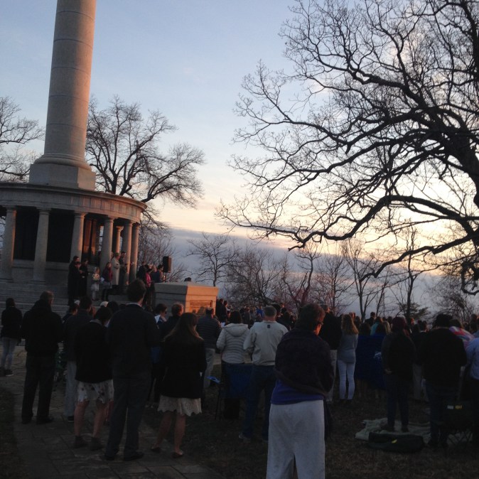 Yesterday we awoke early to attend the sunrise service at Point Park. We joined with over 300 other believers, masked and bundled in the near freezing chill, to worship our Risen Savior as the sun rose in bright splendor to our right, off the side of Lookout Mountain.