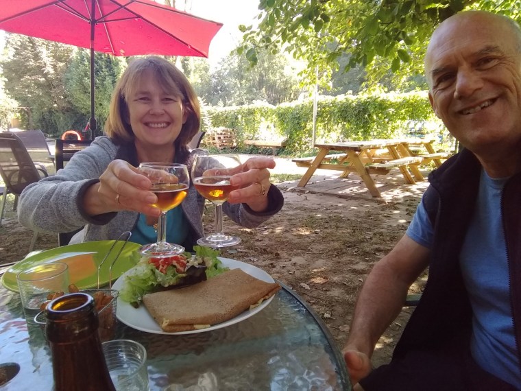 To celebrate, my wonderful, spur-or-the-moment hubby joined me for crepes at our favorite little creperie down by the Saone River. We split a savory and a sweet crepe with a glass of sweet cider. And it was a perfect little celebration.
