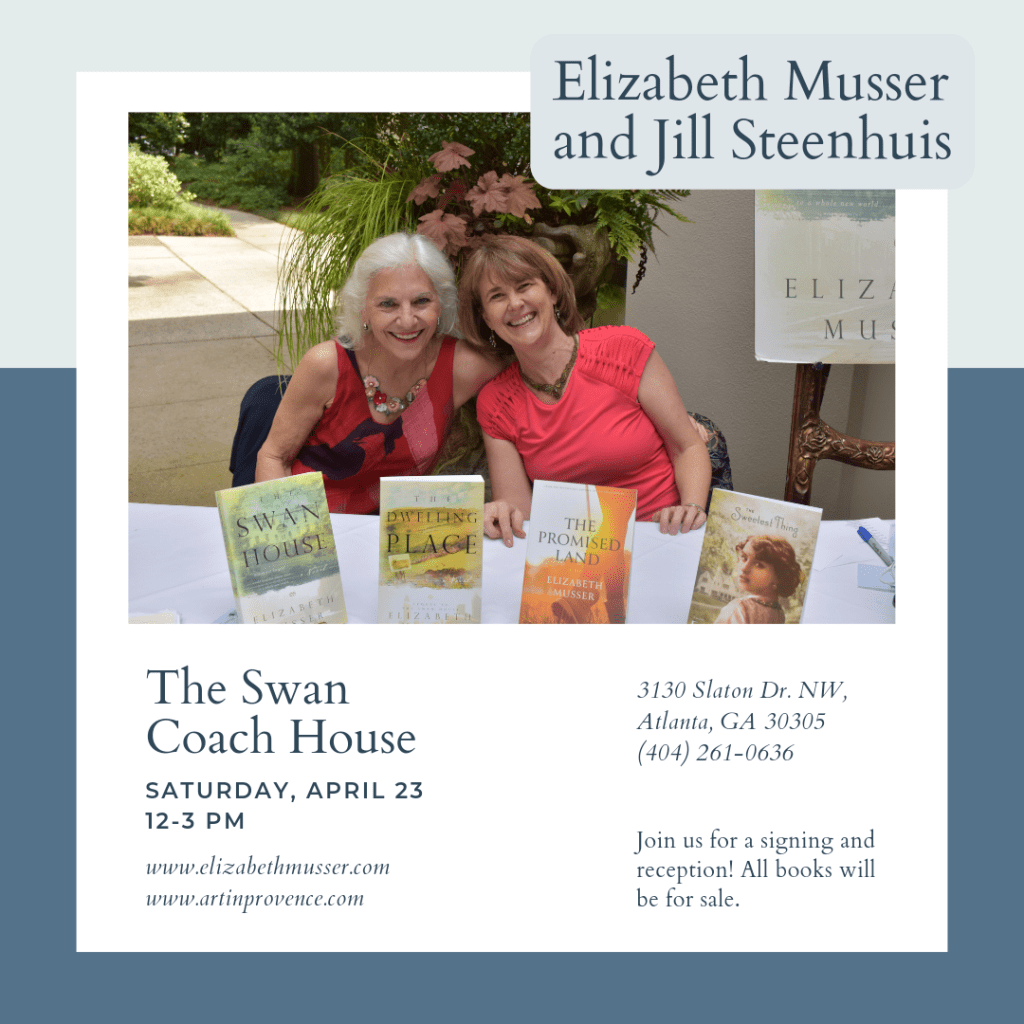 The first is in Chattanooga this Thursday, April 21 and the second in Atlanta on Saturday, April 24. And at both I’ll be joined by my dear and oh-so-talented friend, artist Jill Steenhuis.