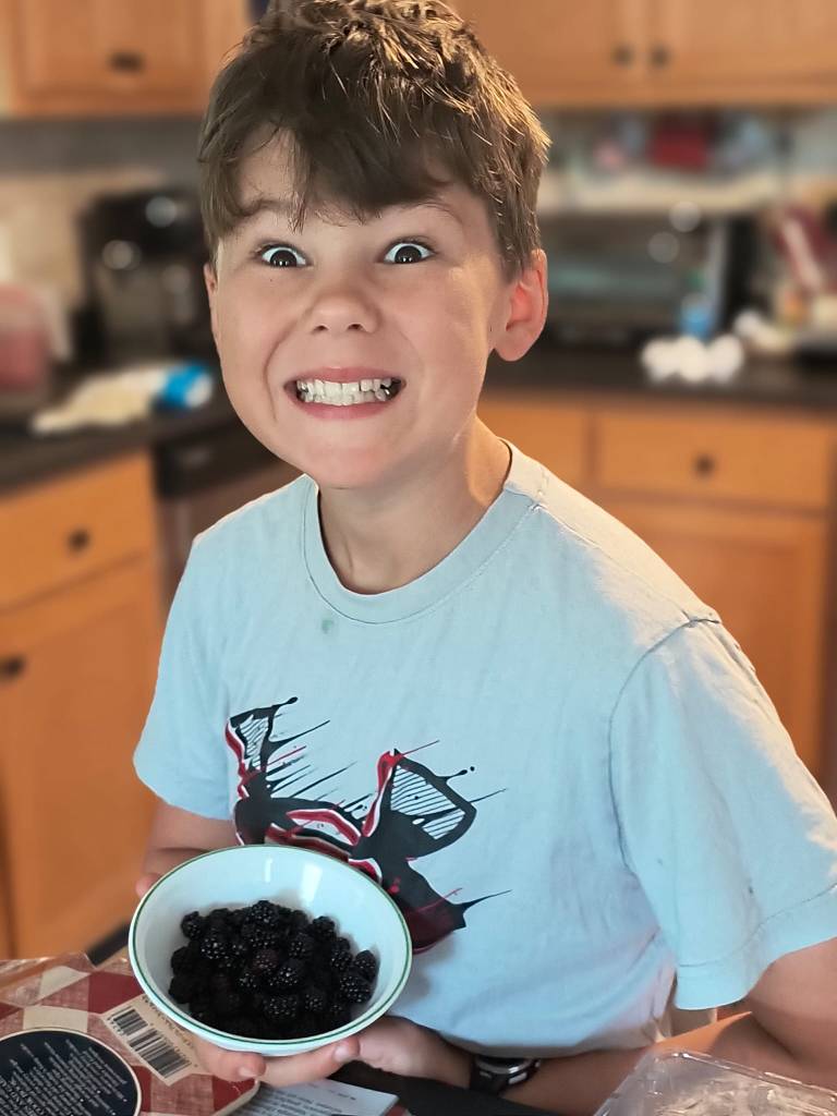 Blackerries and tea parties with the grandkids in Georgia./ Mûres et goûters avec les petits-enfants en Géorgie