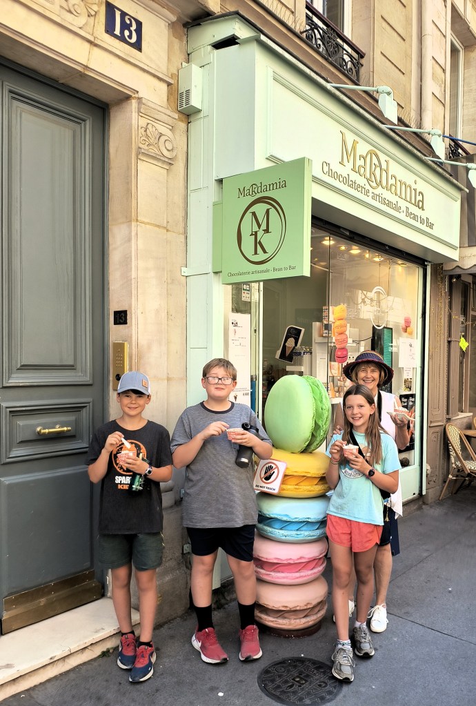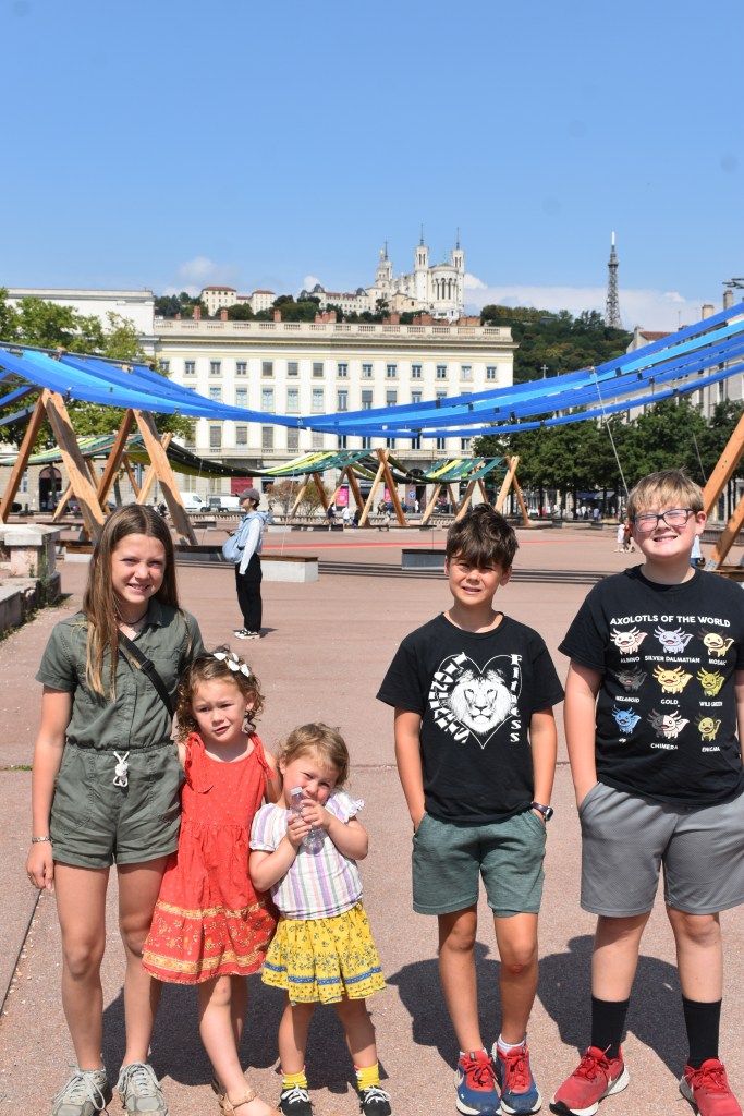 We take our oldest three grandkids to Paris and then the rest of the family joins us in Lyon./ Nous emmenons nos trois petits-enfants les plus âgés à Paris, puis le reste de la famille nous rejoint à Lyon.